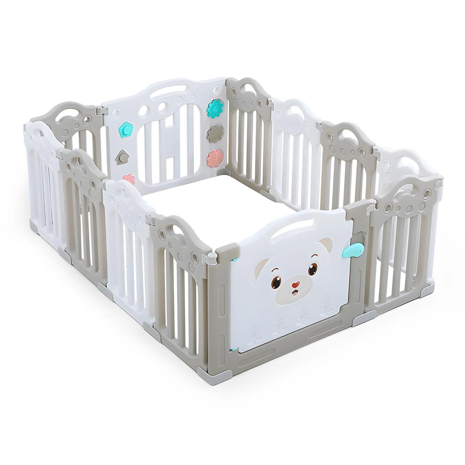 おもちゃ 室内遊具 赤ちゃん柵 子供用 扉付き サークル 赤ちゃん 12枚セット ベビーフェンス 大きめ 出産祝い 人気 折りたたみ プレゼント(外寸151cmx115cmx60cm)【ホワイト×グレー】 ベビーサークル SPIEEK