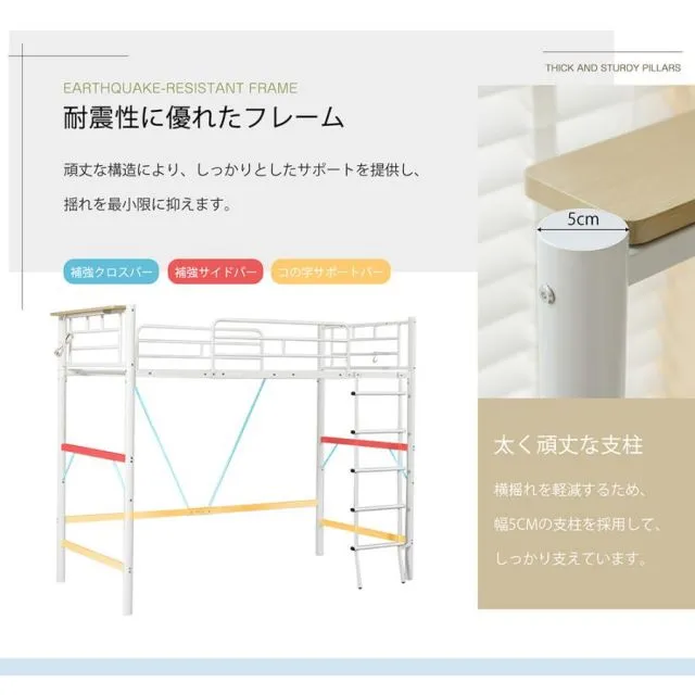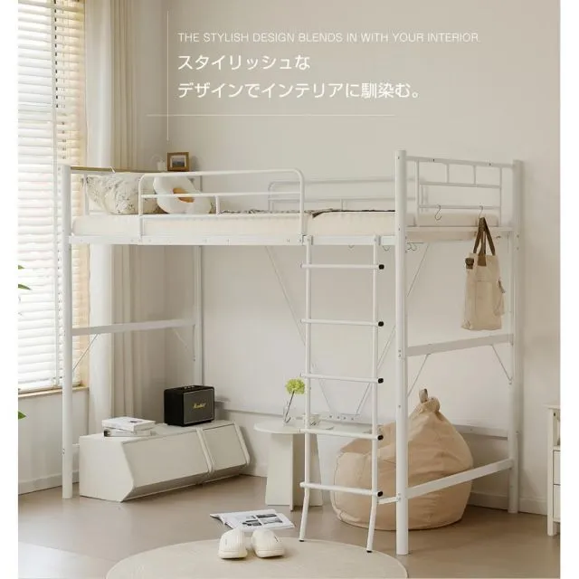 ロフトベッド パイプベッド シングル コンセント付き 宮 ロフト ベッド 北欧風 170cm ロフト ベッド 大人用 二段ベッド 子供 スチール 耐震 ベッド 学生寮