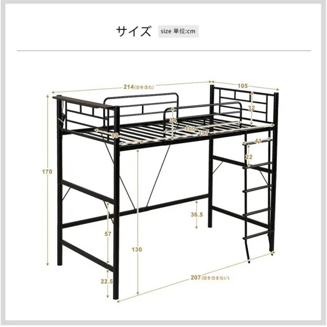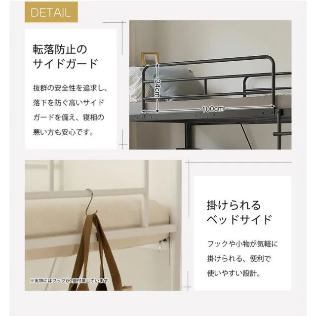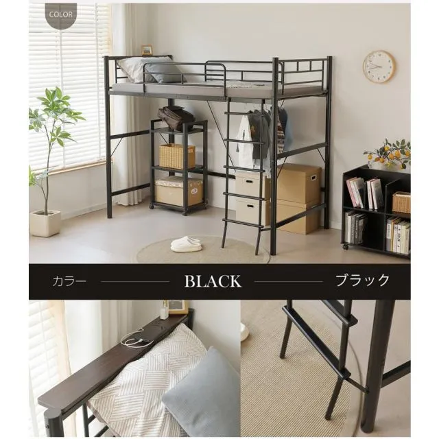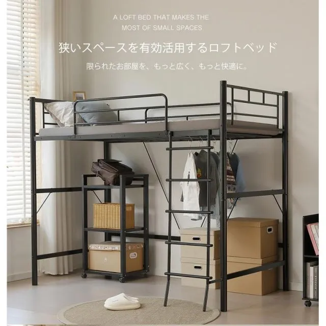 商品名:ロフトベッド パイプベッド シングル コンセント付き 宮 ロフト ベッド 北欧風 170cm ロフト ベッド 大人用 二段ベッド 子供 スチール 耐震 ベッド 学生寮