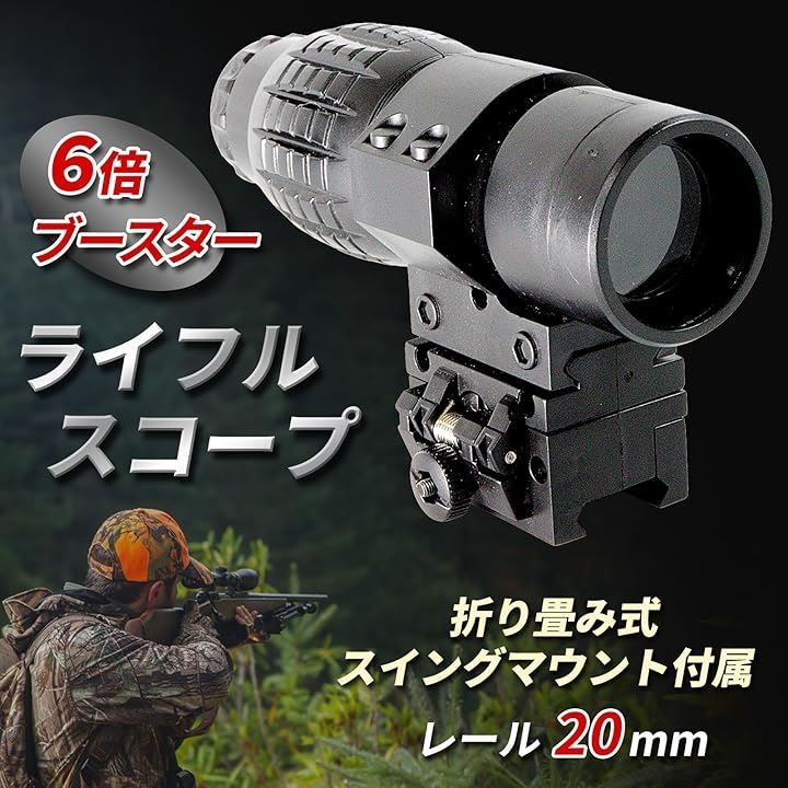 にしはや ライフルスコープ フォーカ機能付き 6倍ブースター 折り畳み式スイングマウント付属 レール20mm 初心者向き( ブラック)