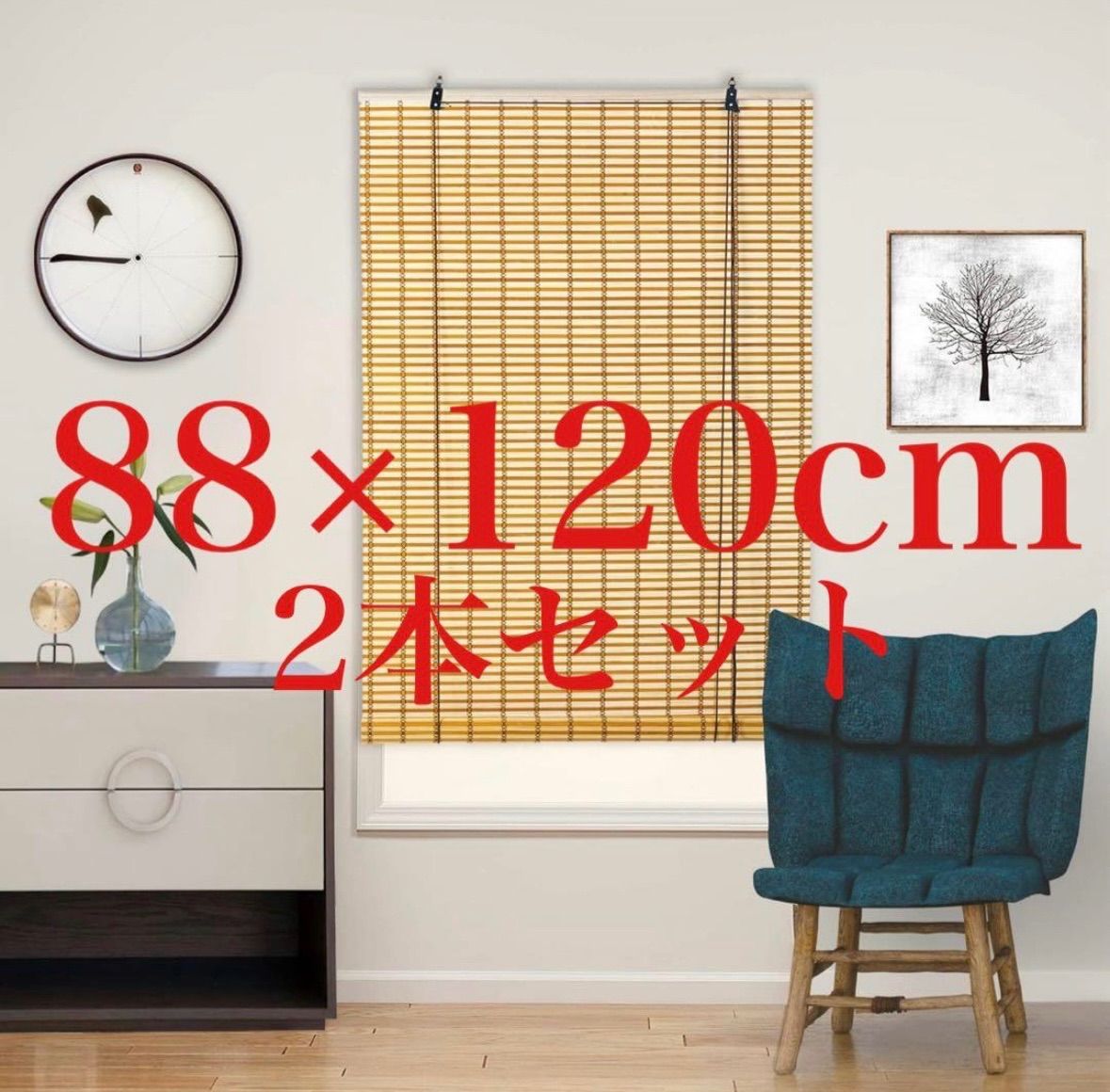 Yitian Bamboo Art すだれ ナチュラル 幅88cm×丈120cm