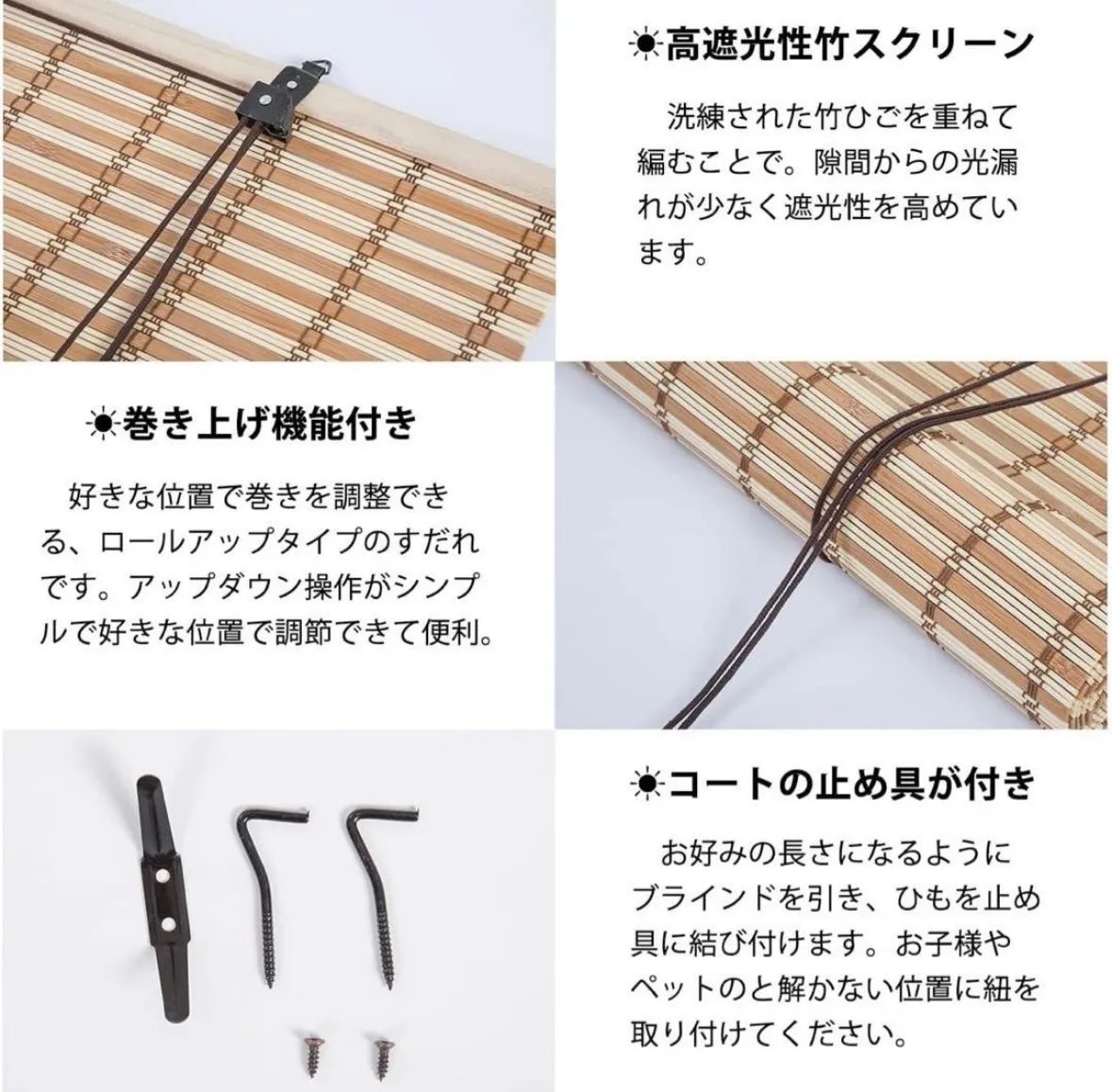 【優れた遮光性】目も細かいので遮光性は十分で、通気性もいいので夏場でも快適に過ごせるでしょう。猛暑でも快適な環境を整えるため、熱中症の対策にもなります。 ※念入りに検品していますが、見逃しがある場合がございます。受取評価後のクレームに関しては対応できかねますので、何かあれば評価前にご連絡ください。