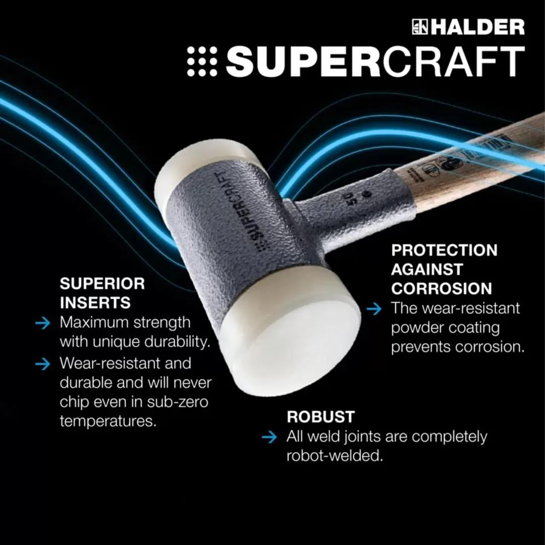 新品 ハルダー (HALDER) ショックレス 無反動 スーパークラフト ハンマー ヒッコリー製ハンドル ナイロン ( 白 ) 径20 3366.020