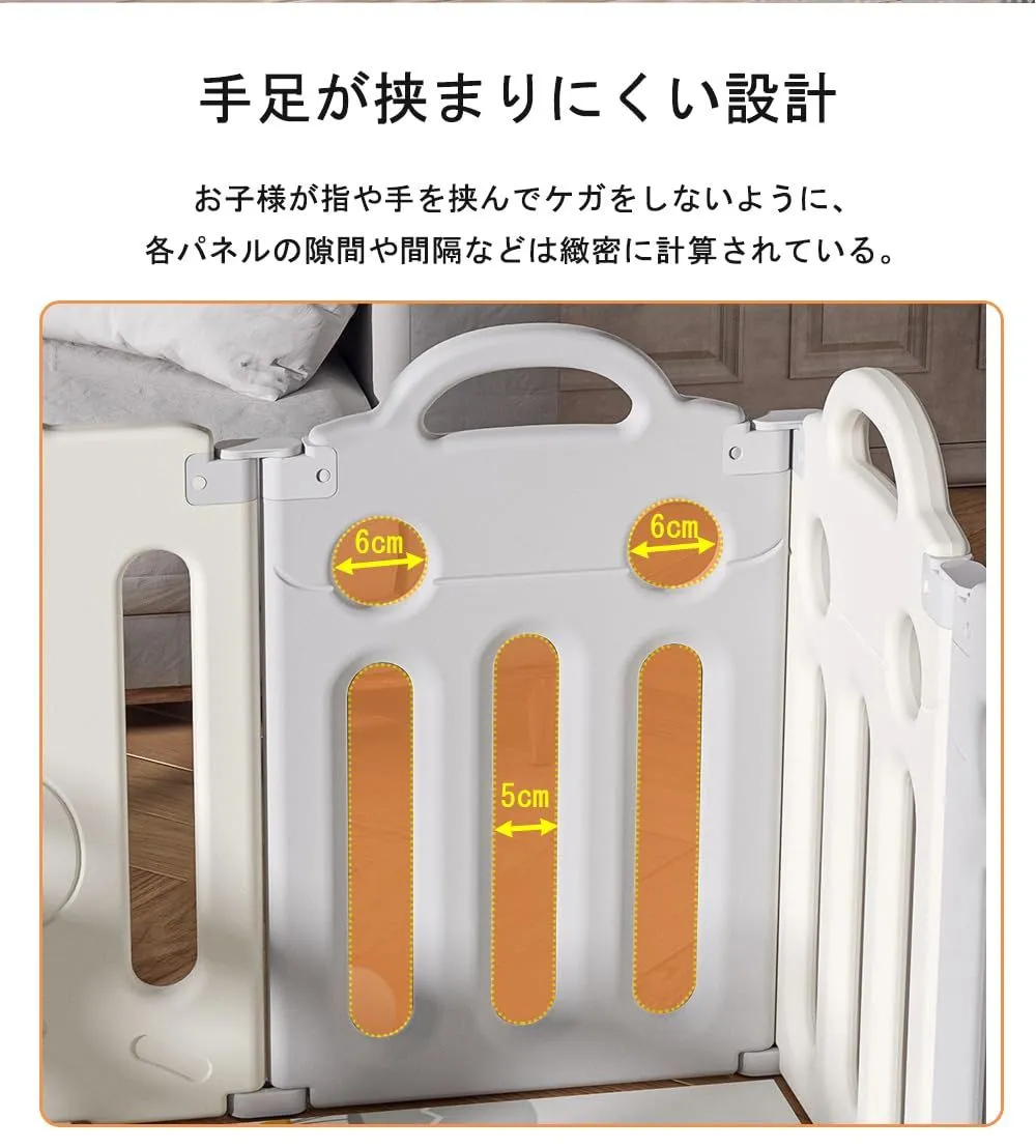【より安全な高さ】パネルの高さはたっぷりの61m、安全性を考慮した高さで、お子様が乗り越えにくい仕様です。安心の角丸設計で、お子様の安全を守ります。