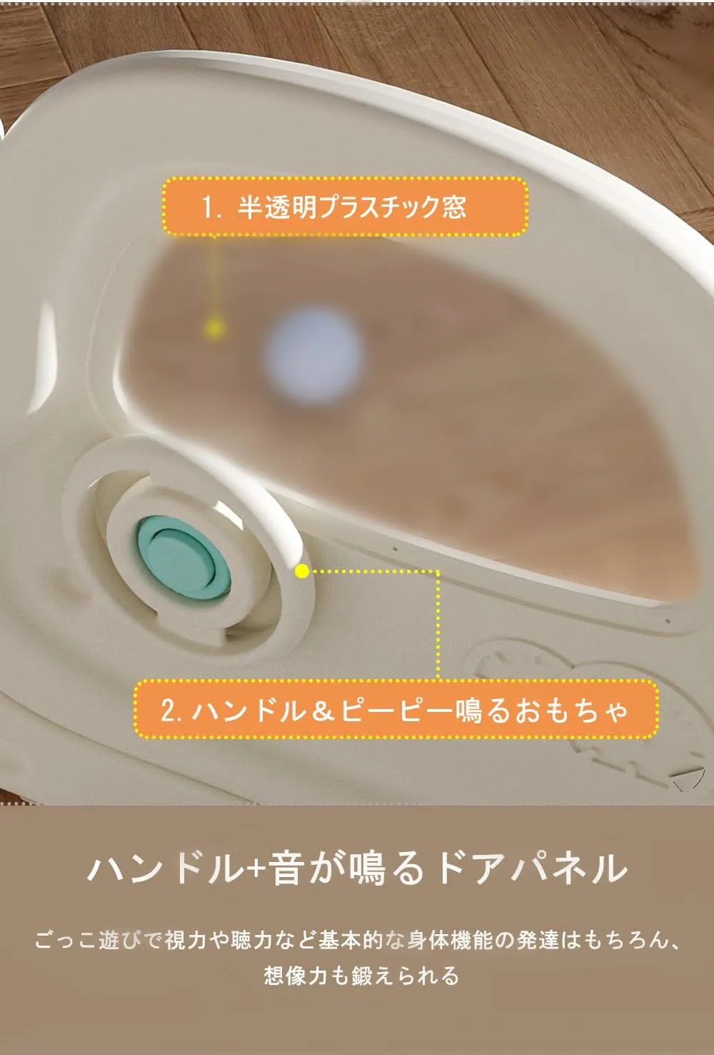 【ハンドル+音が鳴るドアパネル】 ごっこ遊びで視力や聴力など基本的な身体機能の発達はもちろん、想像力も鍛えられます。