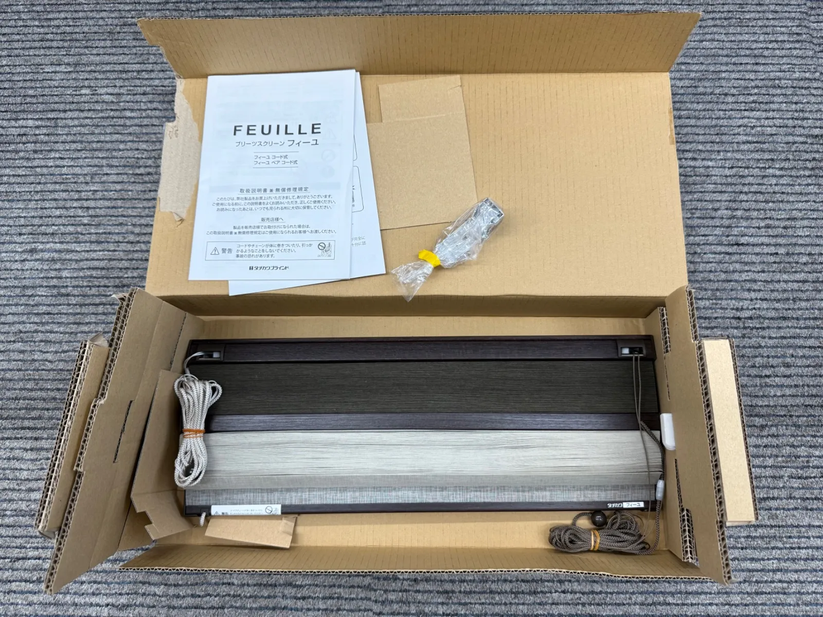 46.タチカワ プリーツスクリーン フィーユペア PS-7162チャスミ(ホナミ,厚地)+ PS-7504グレー(フェアリー,レース)コード式 幅445×高さ2130mm 【新品未使用】