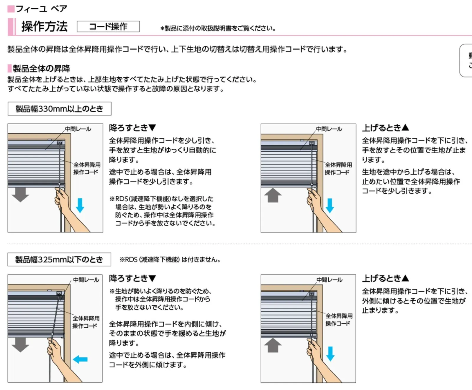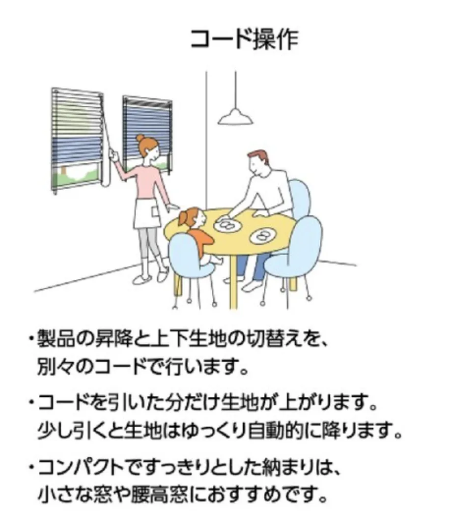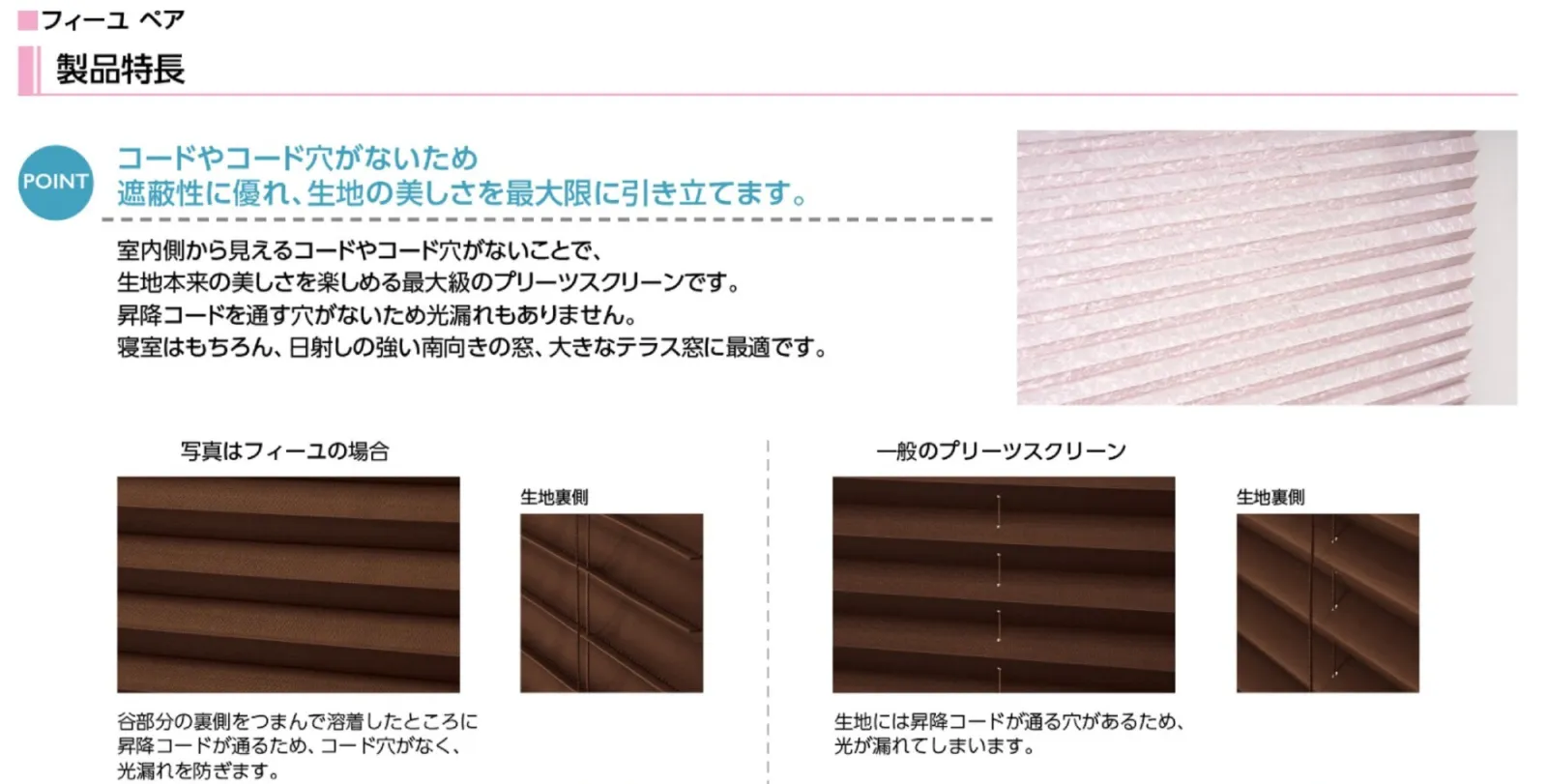 タチカワブラインドのプリーツスクリーン・ツインタイプ(コード式)、