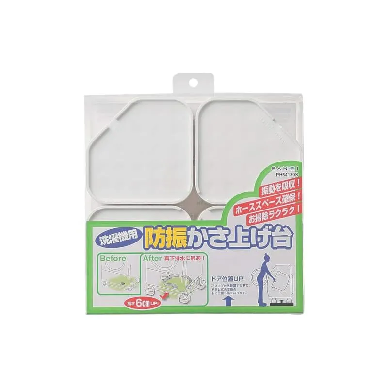 【商品概要】 洗濯機の下に敷くことで、洗濯機の位置が6cmアップします。 洗濯機の振動を抑えます。