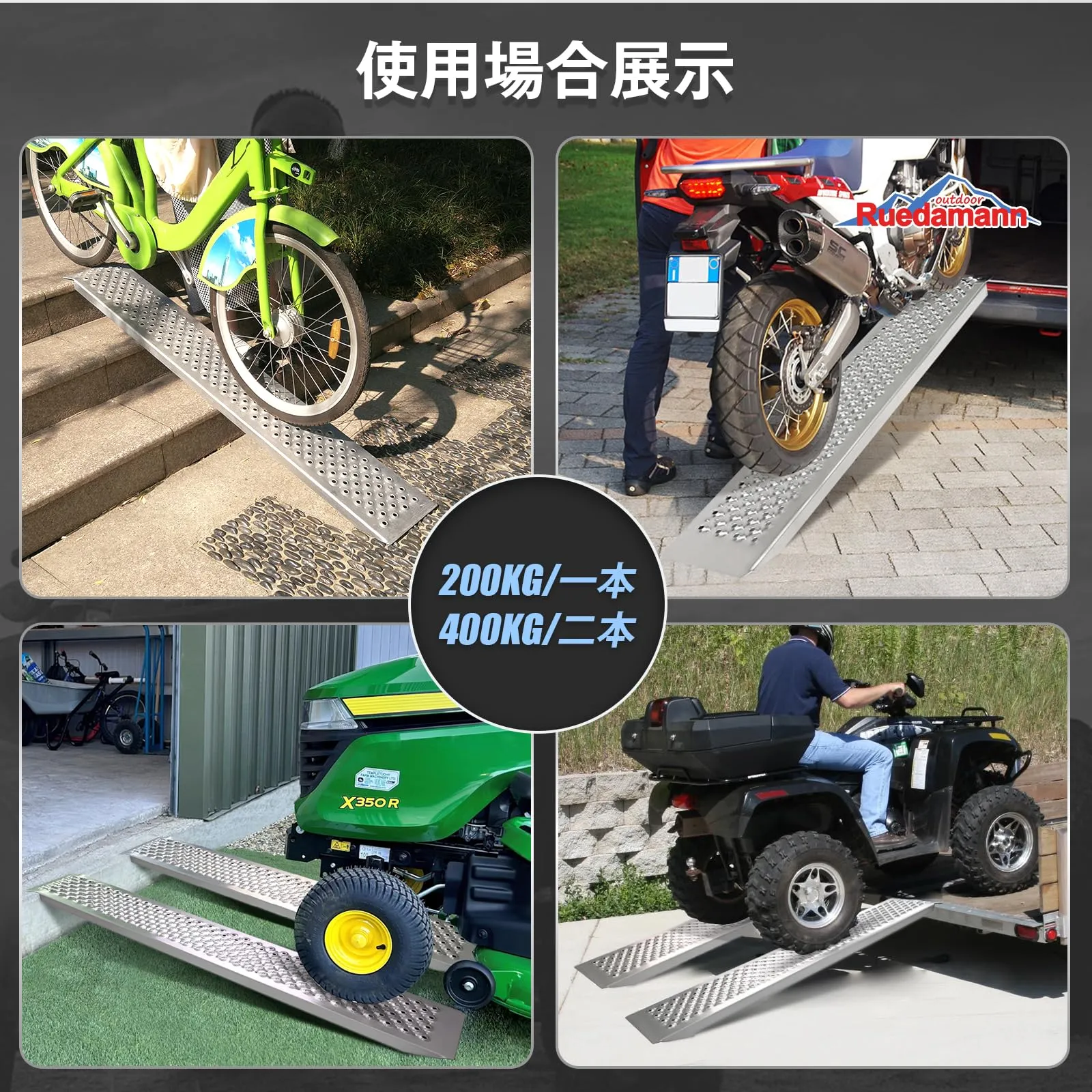 新品 Ruedamann バイク ラダーレール 幅広23cm 長さ120cm ラダーレール バイク 耐荷重400kg 軽量バイク スロープ ATV四輪バギー 草刈り機 除雪機用アルミスロープ 2本セット