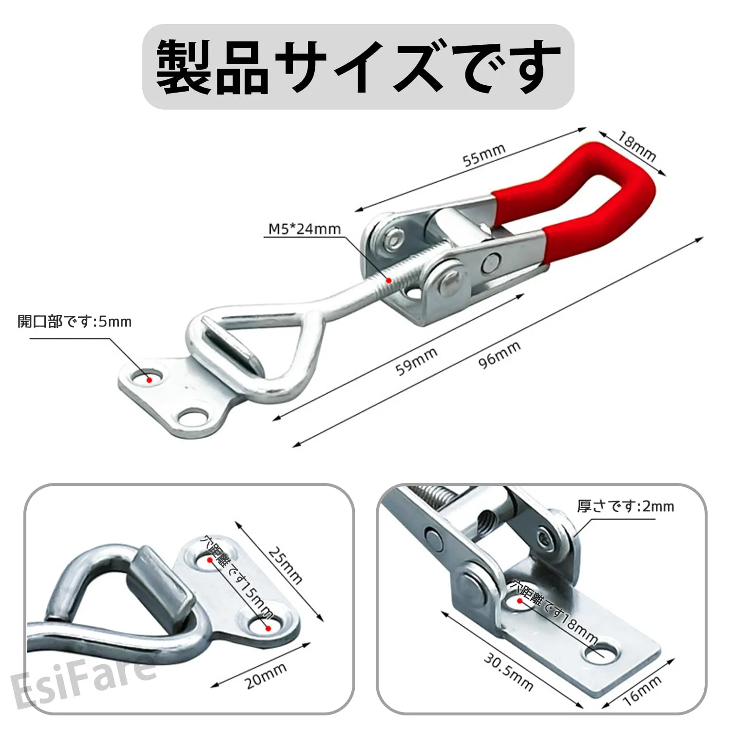トグルクランプ 調節可能なトグルクランプ スタイルのクイックリリース引き掛けトグルクランプ 4個セット 引き型 横押し型 安定 耐久性 取付簡単 ボックスラッチ 木材 産業 フラップロック 固定用 クランプ ラッチ 金具 連結金具 ストッパー