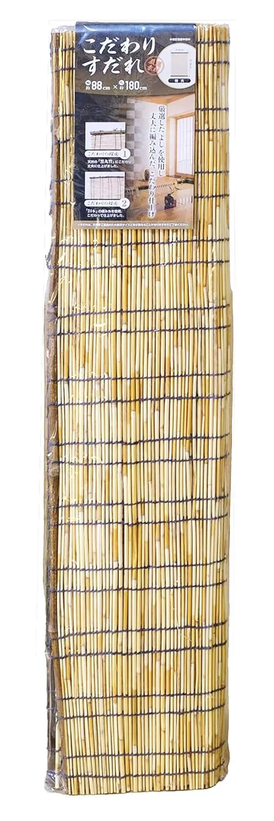 【新着商品】ナチュラル 厳選天然葦 約幅88×長さ180cm すだれ 天津 天然黒丸竹を使用 こだわり 水勘製簾所