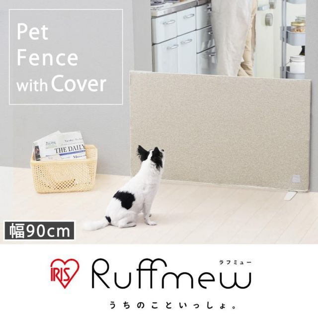◆商品名:アイリスオーヤマペットゲート犬猫フェンスカバー付ペットフェンスRFM-FCN96グレー 製品サイズ(cm):[外形寸法]幅約90×奥行約18×高さ約55[脚間距離(外寸)]約79.5/製品質量:約1.2g 主要材質:[本体]スチール(エポキシ樹脂塗装)[脚部]ABS樹脂、スチール(エポキシ樹脂塗装)、発泡ポリエチレン[線材ジョイント]ポリプロピレン[カバー]ポリエステル、不織布 適合犬種:超小型犬(チワワ、ヨークシャーテリア、他)(※犬種は目安です。) 必要工具:+ドライバー(サイズ:2番) ※フェンスはペットがいる部屋側に立て、脚パーツの長い方を内側にし、両端部を片側5cm以上壁に重ねて隙間ができないように設置してください。 商品紹介インテリアに馴染む、カバー付きペットフェンス。サイズ(約):W90×H55cm。