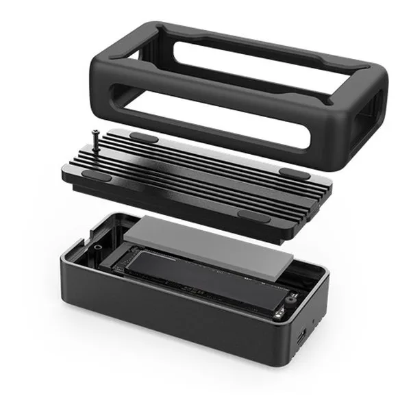 ■付属品:シリコン保護カバー x1 熱伝導シート(2.5mm厚) x2 予備M.2 SSD固定用のゴム部品 x1 組立用ドライバー x1 予備カバー固定ねじ x1 USBケーブル(Type-CーType-C) x1