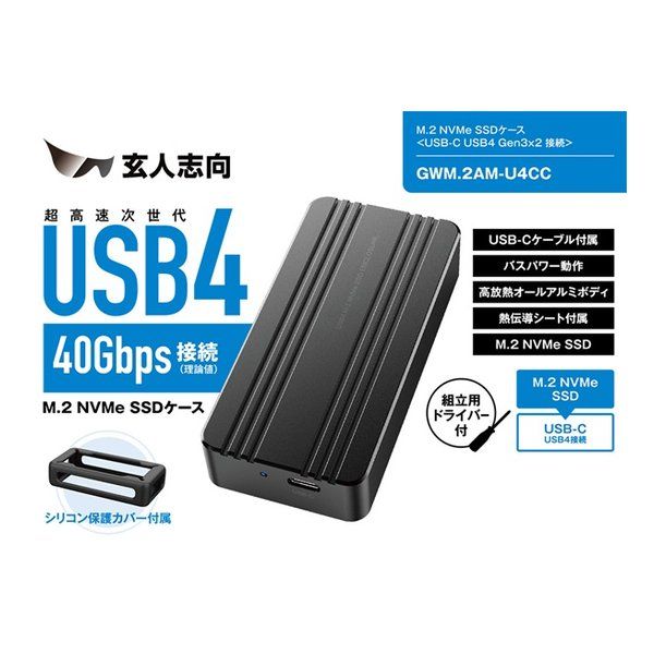 玄人志向 クロウトシコウ 外付け M.2 NVMe SSDケース GWM.2AM-U4CC (2658540)