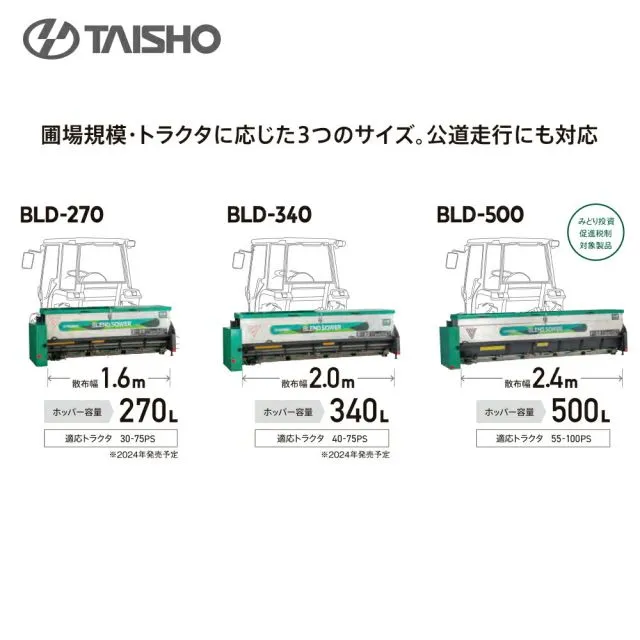 [1S:標準3P手動]!!エントリーで最大100%ポイントバック!! タイショー 肥料混合散布機 ブレンドソワー BLD-270- 散布幅1.6m ポッパー容量270L 無線リモコン 公道走行対応 適応トラクタ30-75PS