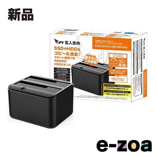 玄人志向 クロウトシコウ クローン機能つき 外付SSD/HDDスタンド USB3.2接続 3.5/2.5型 SATA SSD/HDDx2 KURO-DACHI/CLONE/ESKP/MU (2658539)