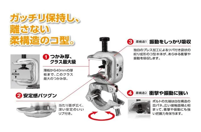 【送料無料】国元商会 KS コ型クランプ2型自在(1個入) 鉄骨用クランプ