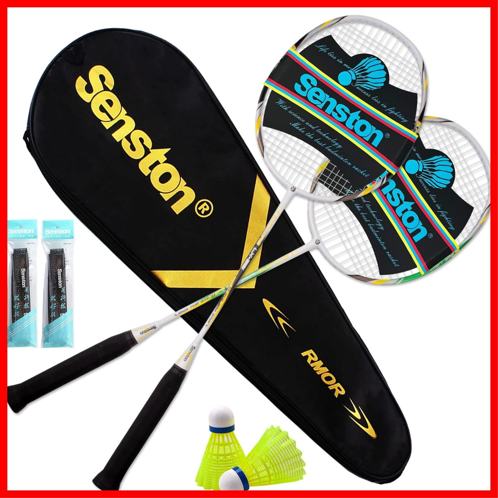 【コンプリートセット】家族でバドミントンをするのに必要なものがすべて揃っています! このバドミントンセットには、高品質バドミントンラケット2個、ナイロンシャトルコック2個、ランダムカラーグリップ2個、便利なキャリーバッグが含まれます。
