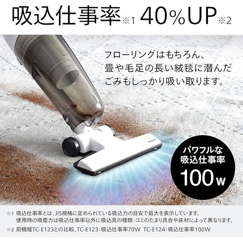 TWINBIRD(ツインバード) 掃除機 コード式 スティック ハンディクリーナー サイクロン式 自立可能 軽量 パワフル吸引 2WAY 新生活 スペシャルホワイト 白 TC-E124SPW