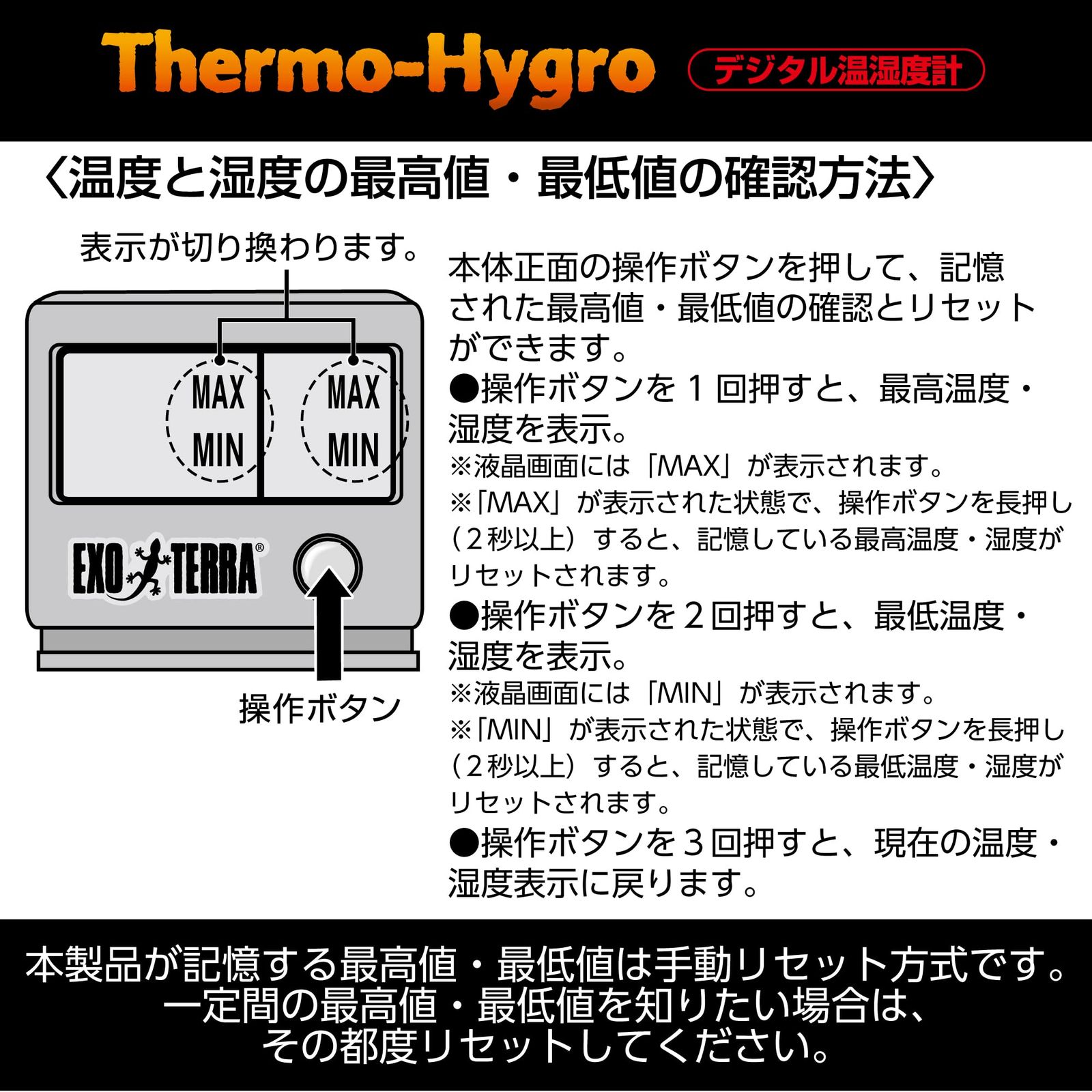 エキゾテラ GEX EXOTERRA デジタル温湿度計 PT2470 温度・湿度の最高値と最低値のメモリー機能付き 見やすいデジタル表示