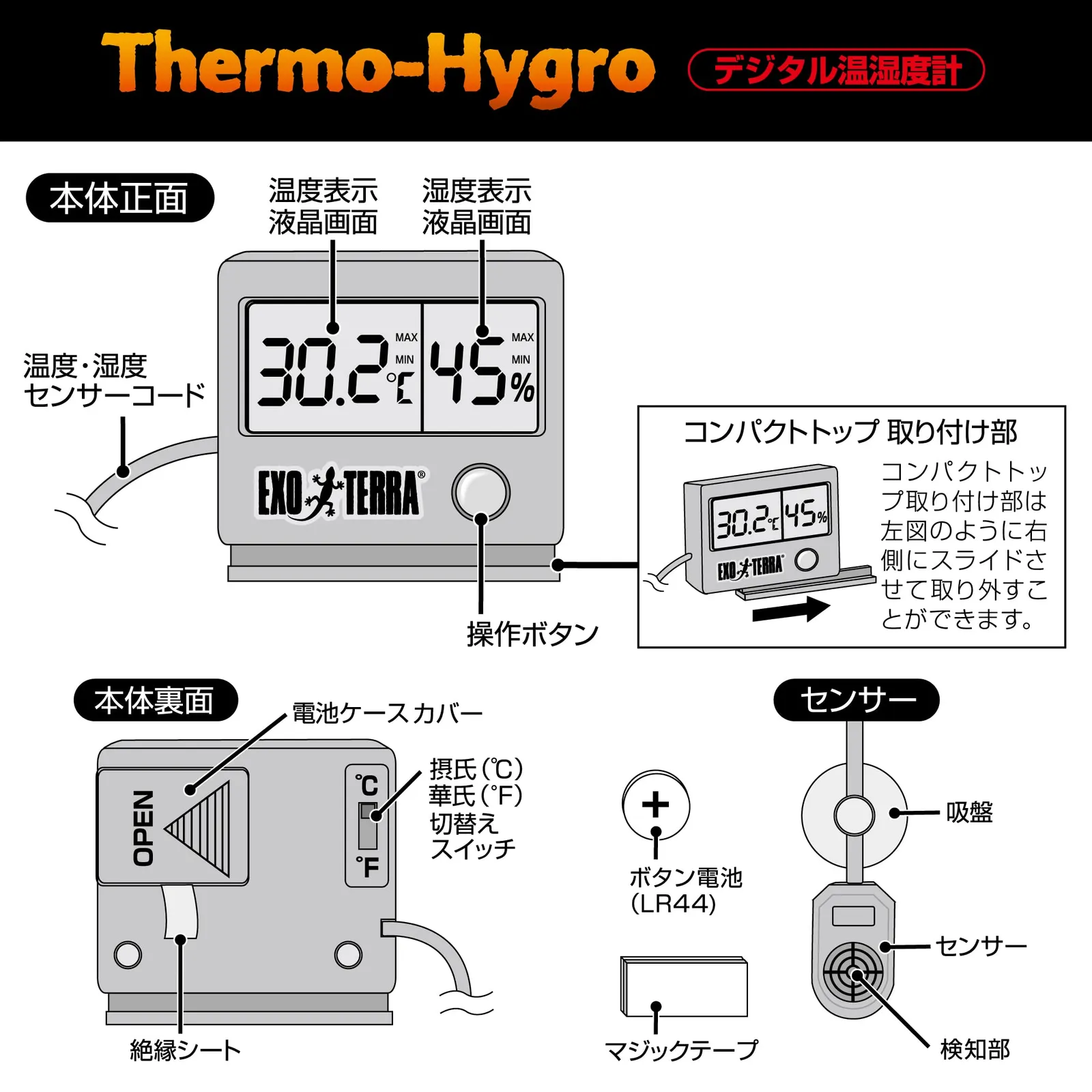 新品 エキゾテラ GEX EXOTERRA デジタル温湿度計 PT2470 温度・湿度の最高値と最低値のメモリー機能付き 見やすいデジタル表示