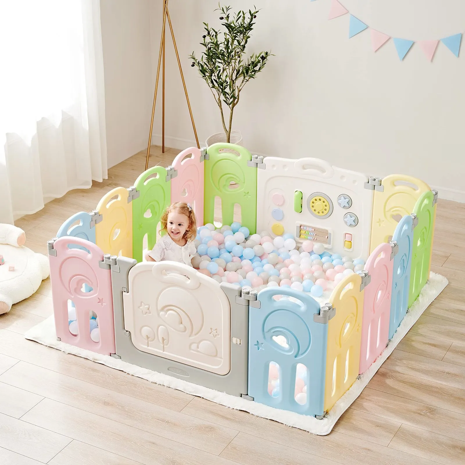 Fortella Cloud Castle ベビーサークル 折畳み 人気 大きめ 赤ちゃん サークル 高さ62cm おもちゃパネル ドア付き 組立簡単 ベビーフェンス キッズパーテーション プレイヤード 子供ゲート プレゼント 出産祝い マルチカラー 14枚セット
