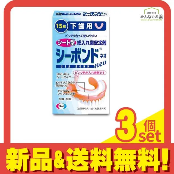 シーボンドネオ下歯用 シート型総入れ歯安定剤 15枚入 3個セット まとめ売り