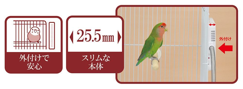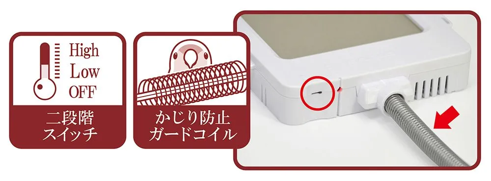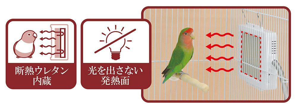 【GLOBUY】をご覧いただきありがとうございます(˶ᵔ ᵕ ᵔ˶) ※営業日は平日のみとなっております。 土曜・日曜・祝日は、発送およびメッセージのご対応をお休みさせていただいております。 ご不便をおかけいたしますが、何卒ご理解のほどよろしくお願いいたします。 ──✿────✿────✿── 外付け式で取り扱い簡単。小鳥、小動物のためのあったかヒーターです。 日本製のPTCヒーターと電子温度制御でダブルの安心設計。