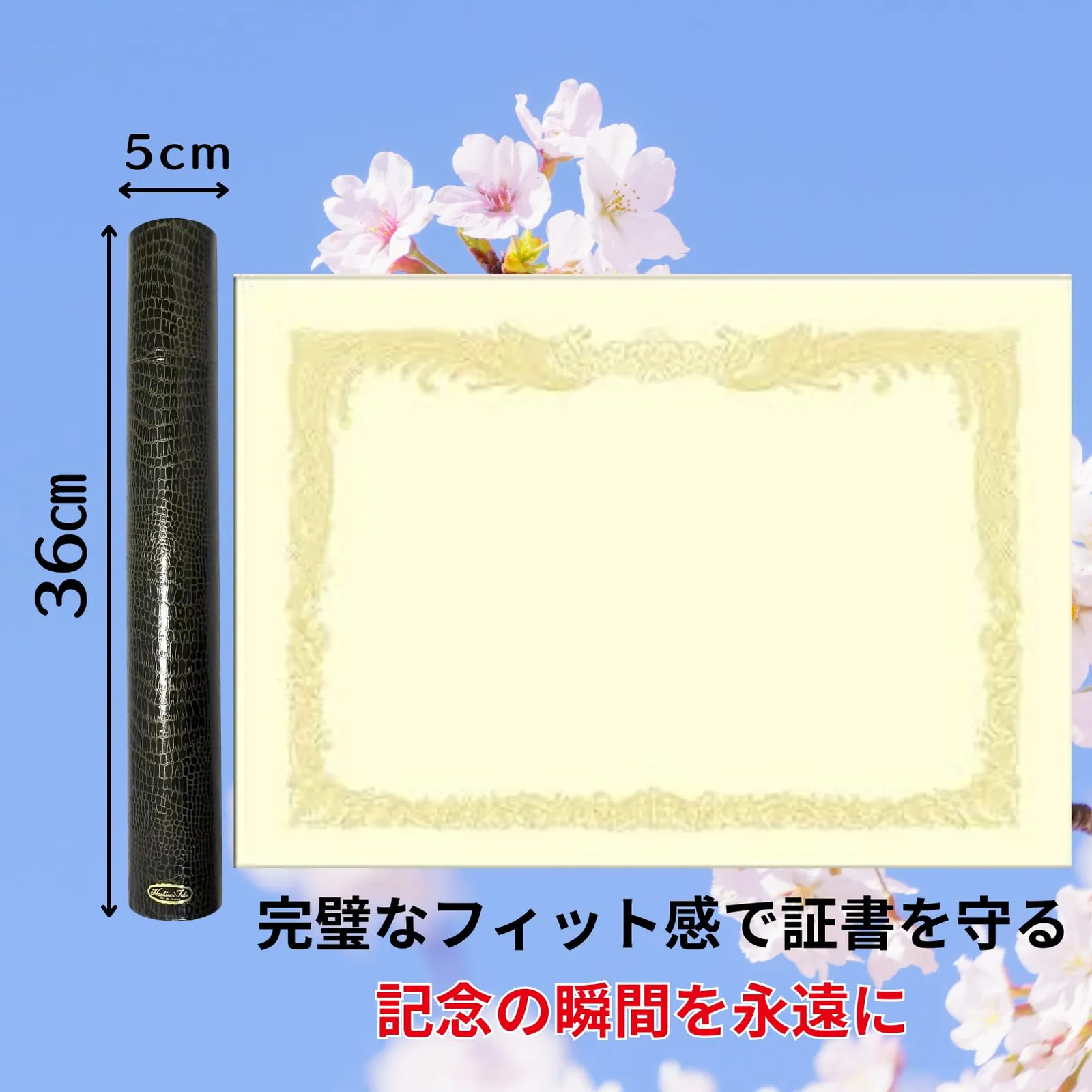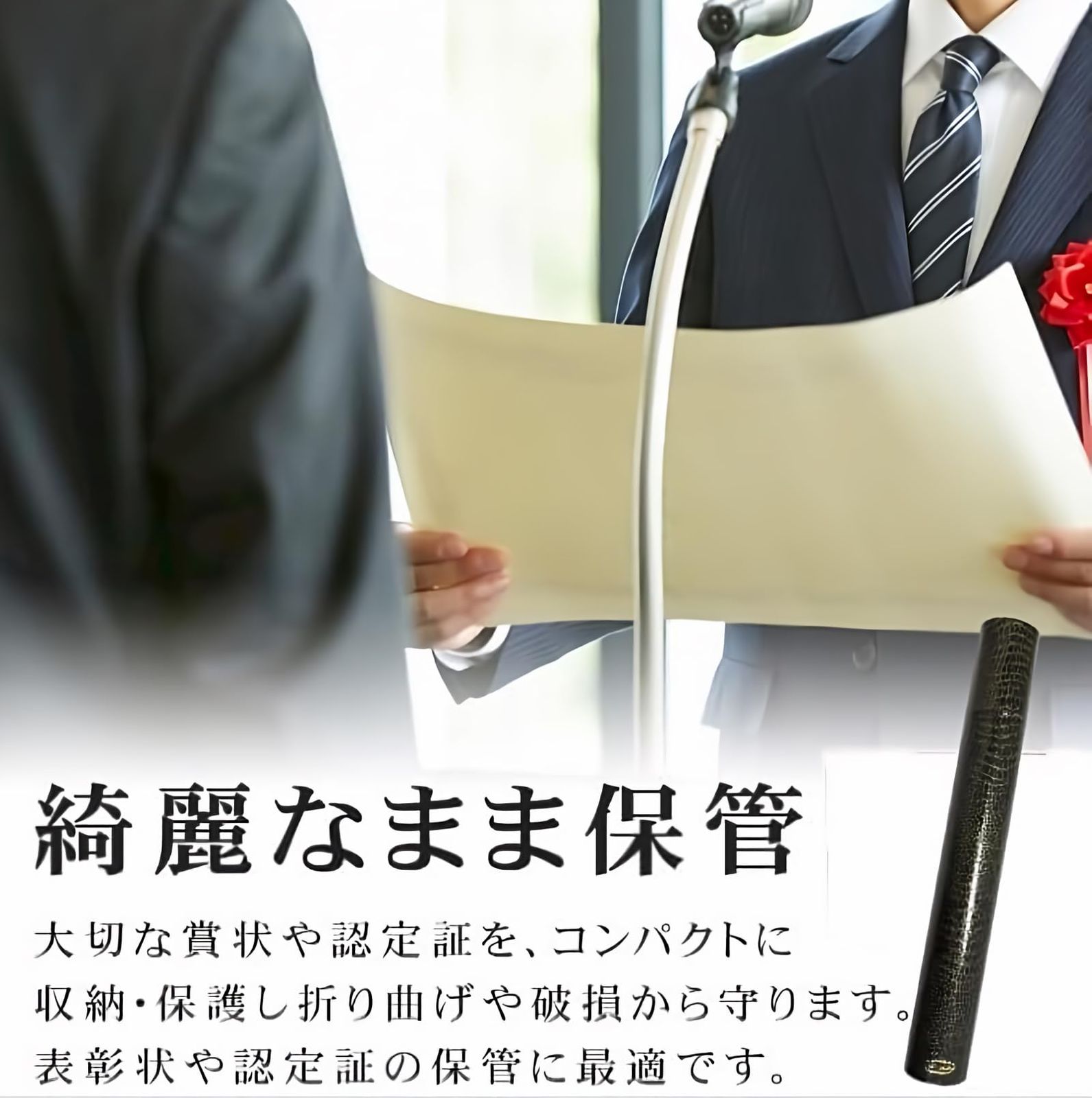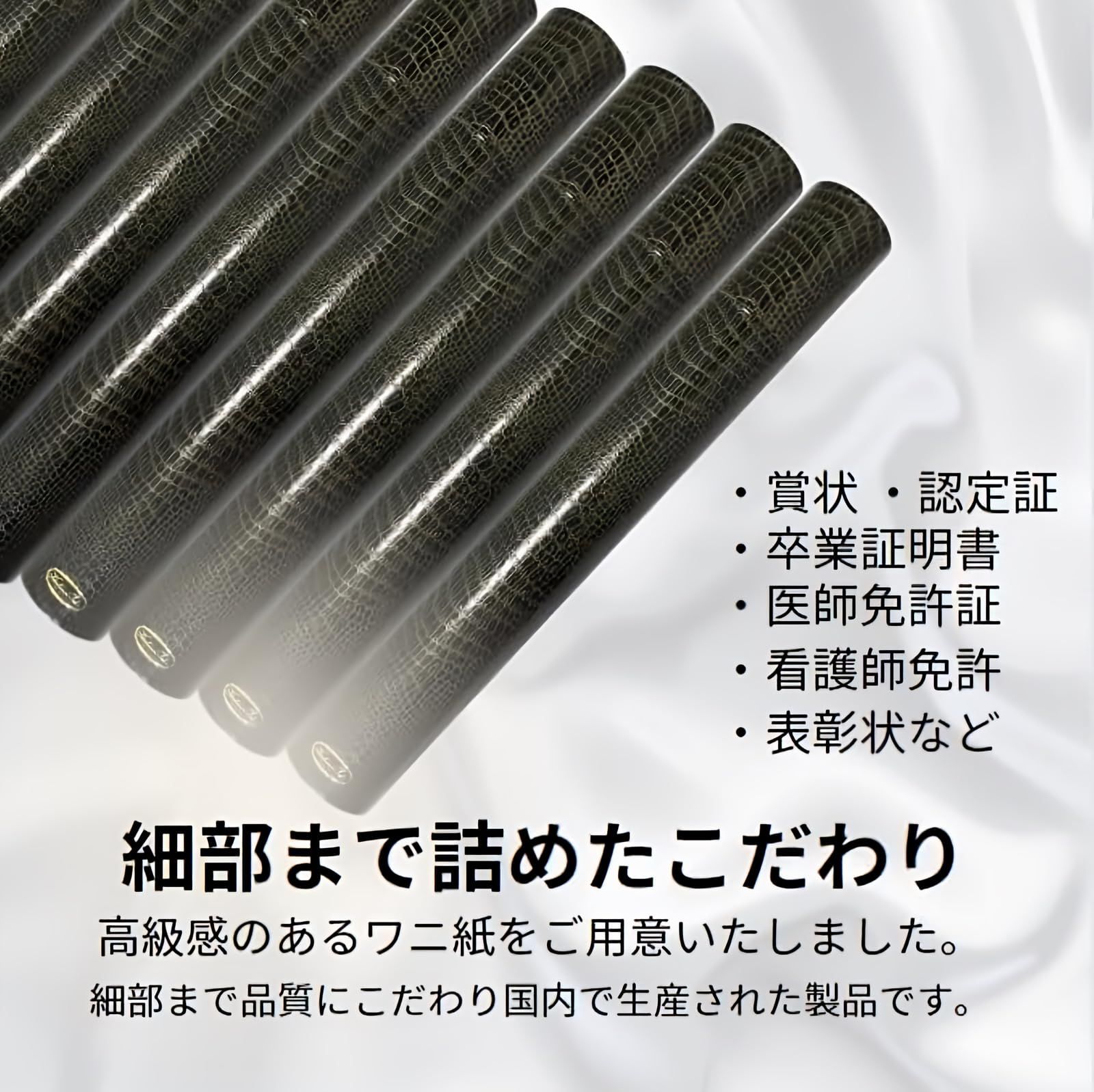 新品 賞状 筒 B4 A3 対応サイズ 1本 ワニ柄 賞状入れ 仁友堂オリジナルシール付き (黒ワニ)