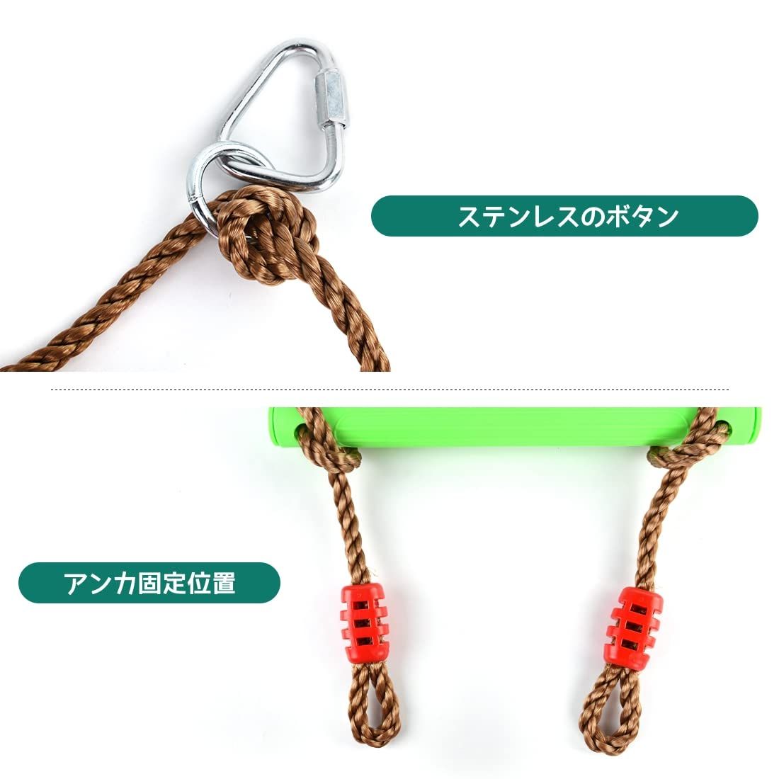 【取り付け簡単】この登りはしごの上部分にはステンレスのボタンがあり、簡単にブランコ、ツリーハウス、木の枝、子供の游び部屋などに接続することができます。そして、忍者はしごの下部分には二つアンカ専用のデザインがあり、アンカを利用して、はしごを地面に固定でき、安定性も高めます(アンカが含まれませんので、予めご了承ください)。