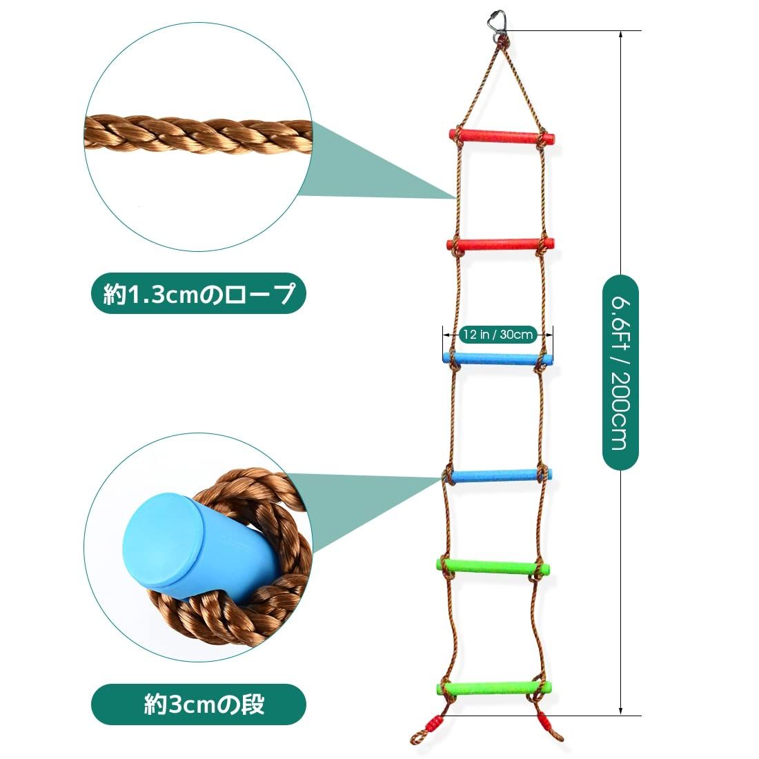 WHDZ 縄はしご 遊具 6段 子供用 屋外 室内 遊び道具 梯子 はしご アスレチック 登りはしご 子供 おもちゃ スポーツ練習梯子 キッズ 耐荷重約105kg 子供の家庭用遊具 3色タイプ