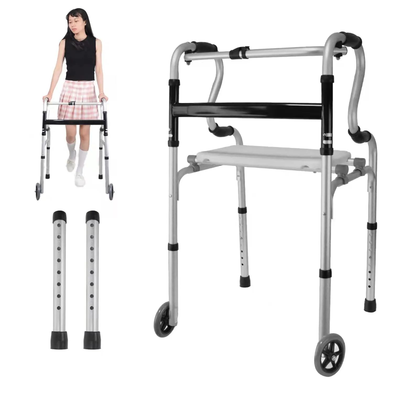 歩行補助具 立ち上がり 高さ8段調節 介護用風呂椅子 固定・交互・前輪3way式 キャスター アルミ製 取替可能 軽量 高齢者用 折りたたみ 耐荷重180kg 歩行器 持ち運び便利 LEJIEYIN