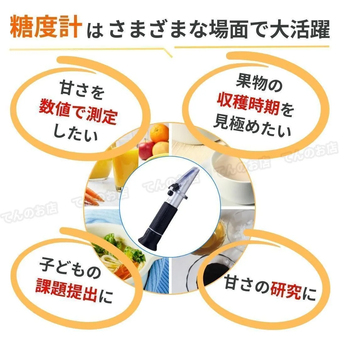 【お届け情報】 ゆうパケットプラスでお届け ご入金後2日以内に配送します。 家庭菜園やガーデニングの強い味方の測定器! 収穫適期の見極め、果物や野菜の糖度チェック、飲み物の甘さ測定、自由研究や健康管理まで幅広く活躍する人気のハンディ糖度計です。 注意:万が一故障などがある場合は、評価前にご相談ください。