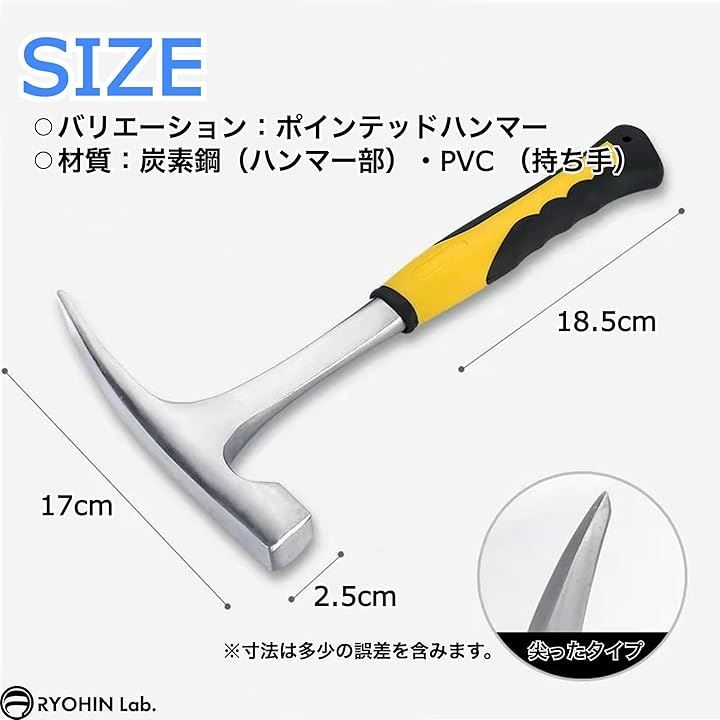 RYOHIN Lab. 良品ラボ 地質調査用 ロックピックハンマー グリップ 握りやすい 岩石採掘 鉱山探査 砕石 採石(ポインテッドハンマー)