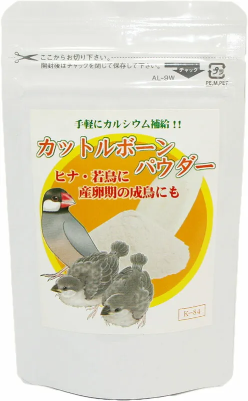本製品を差し餌のパウダーフードやアワ玉に混ぜたり、通常の餌に振りかけることによりカルシウムを補給し骨格形成の手助けになります。