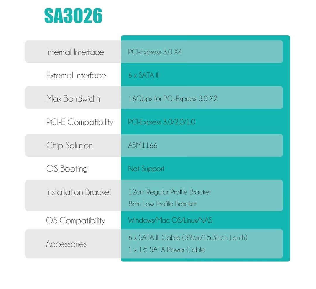 SA3026-C 6ポート増設ボードPCIe X4 SATA拡張カード