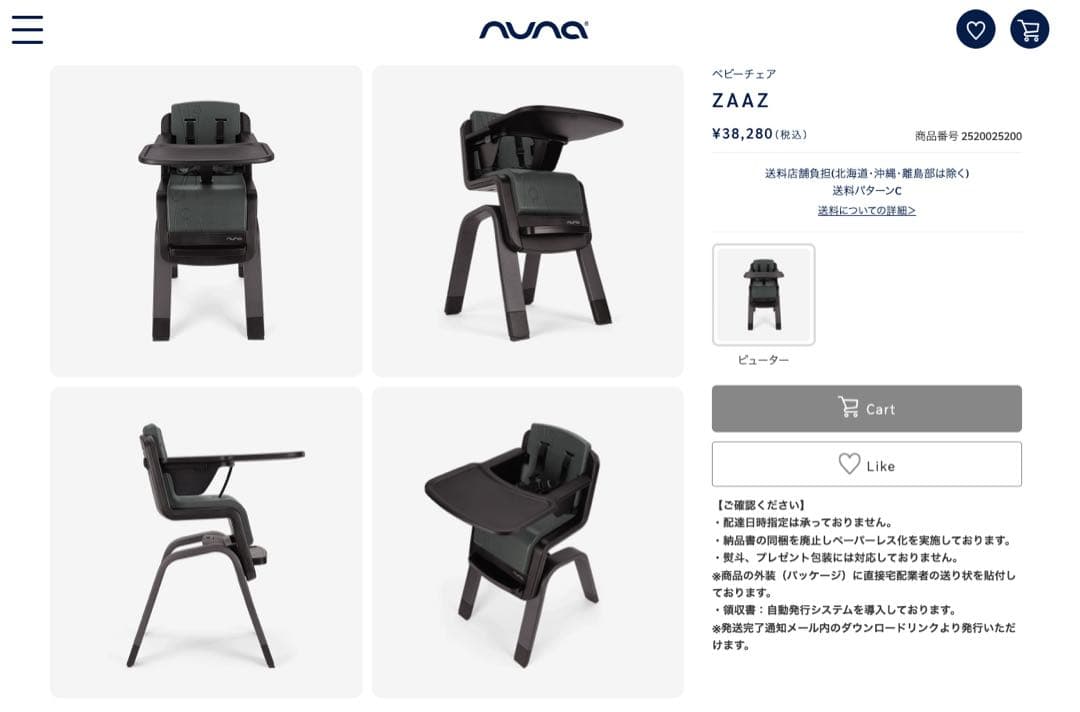 東京都内限定、NUNA ZAAZ ベビーチェア ブラック