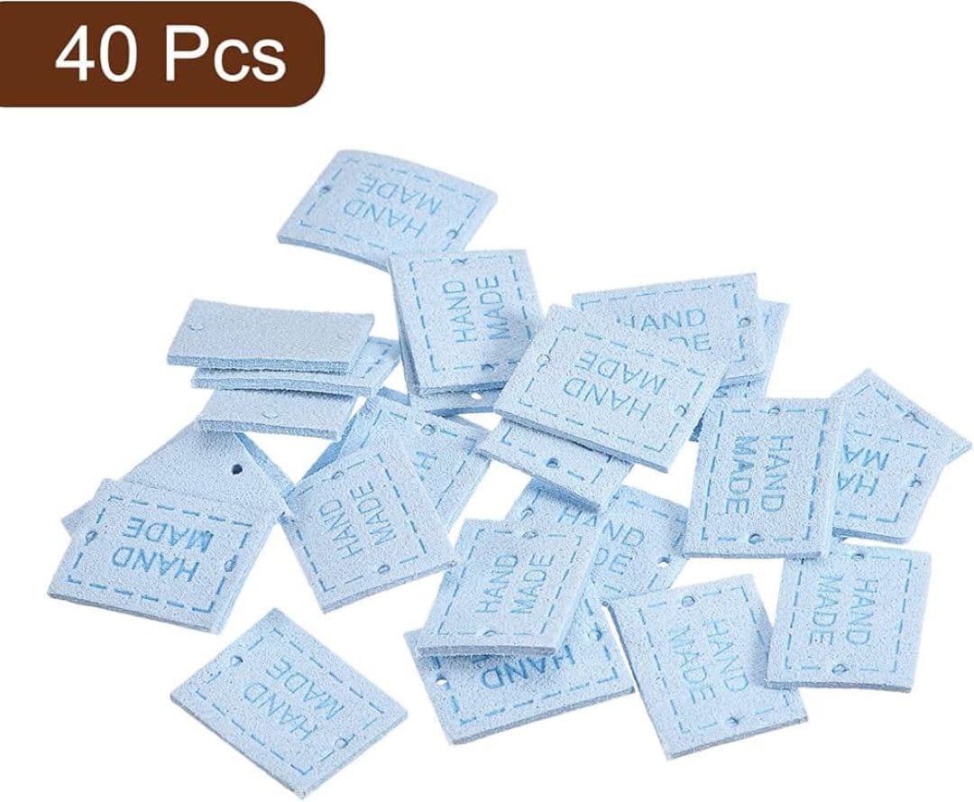 uxcell 手作りレザーラベル 超微細繊維皮革 ミシン エンボスラベル 刺繍 かぎ針 ラベル 服装用 帽子 マフラー DIY 20x15mm ブルー 40個入り