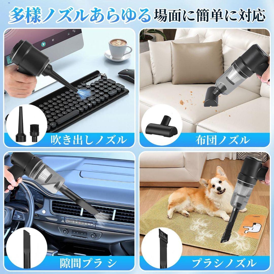【一台多機能 家庭用&車用 掃除機】 掃除機だけでなくエアダスターや電動エアーポンプやドライヤーとしても利用可能です。 掃除機として、ソファの隙間、キーボード、ペットケア、車内掃除などの場所に使用可能です。 空気入れ・抜き機能も付き、電動エアーポンプとして、浮き輪などの空気入れ、収納袋、衣類圧縮袋の真空引きにも使用可能です。 ドライヤーとして使用もでき、衣類やペットの毛髪などを乾かすことも可能。