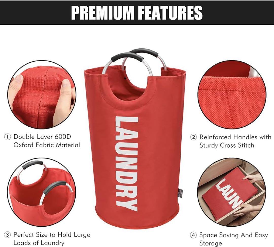 DOKEHOM 90L ランドリーバスケット ランドリーかご 洗濯ボックス 収納ボックス 収納バッグ 洗濯物入れ 防水取っ手付き 折りたたみ(全7色レッド, L)