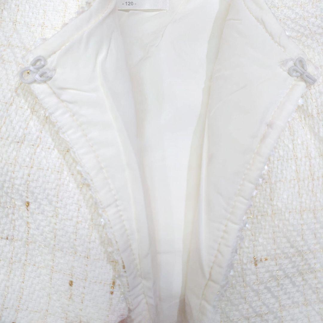 【注意】 海外製品の為 完璧を求める方のご購入はお控えください。 フォーマルスーツ 女の子 入学式 卒園式 入園式 卒業式 七五三 発表会 結婚式 お受験 冠婚葬祭 セレモニー ホワイト ジャケット ワンピース リボン 120 130 140 150 ツイード風 レース フリル パール ノーカラー 上品 きれいめ キッズ 子供服 スーツセット サイズ...130cm 6872