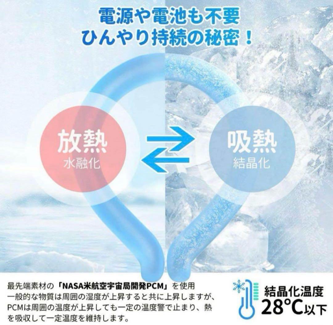 【宇宙飛行士開発!特殊冷却物質(PCM)配合】 このネッククーラーには、**宇宙飛行士を極限環境から守るために開発された特殊な冷却物質(PCM:相変化物質)**が使用されています。28℃以下で自然凍結し、最適な温度を長時間キープします。