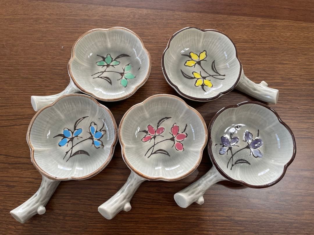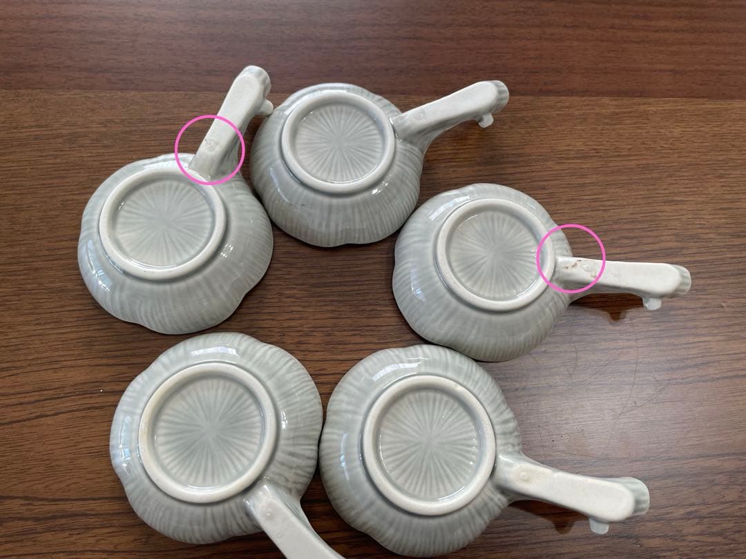 【皿】 全長...約11㎝、高さ...約2.2㎝ 口径...6.8㎝ 新品未使用品ですが、 自宅の食器棚で長期保管していました。 お皿(2枚)の取手の裏側に小さな汚れがあります。 写真でご確認ください。 専用箱はありません。 検品はしておりますが、あくまでも素人検品です。 ご了承下さい。 梱包材はリサイクル品を使用させていただく場合もございます。 返品はどのような理由でも対応いたしません。 上記ご理解の上、ご検討下さい。 ☆他サイトでも出品中ですので、 何かございましたらコメントお願いします。 他サイトで売れたら、削除させていただきます。