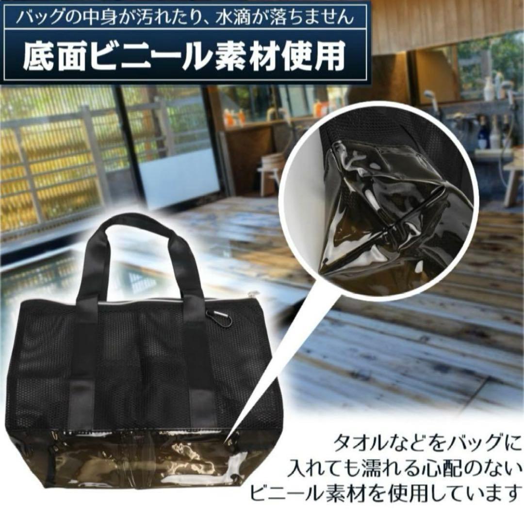 大容量メッシュトートバッグ ビニール底 汚れ防止 折り畳み サウナ ジム プール