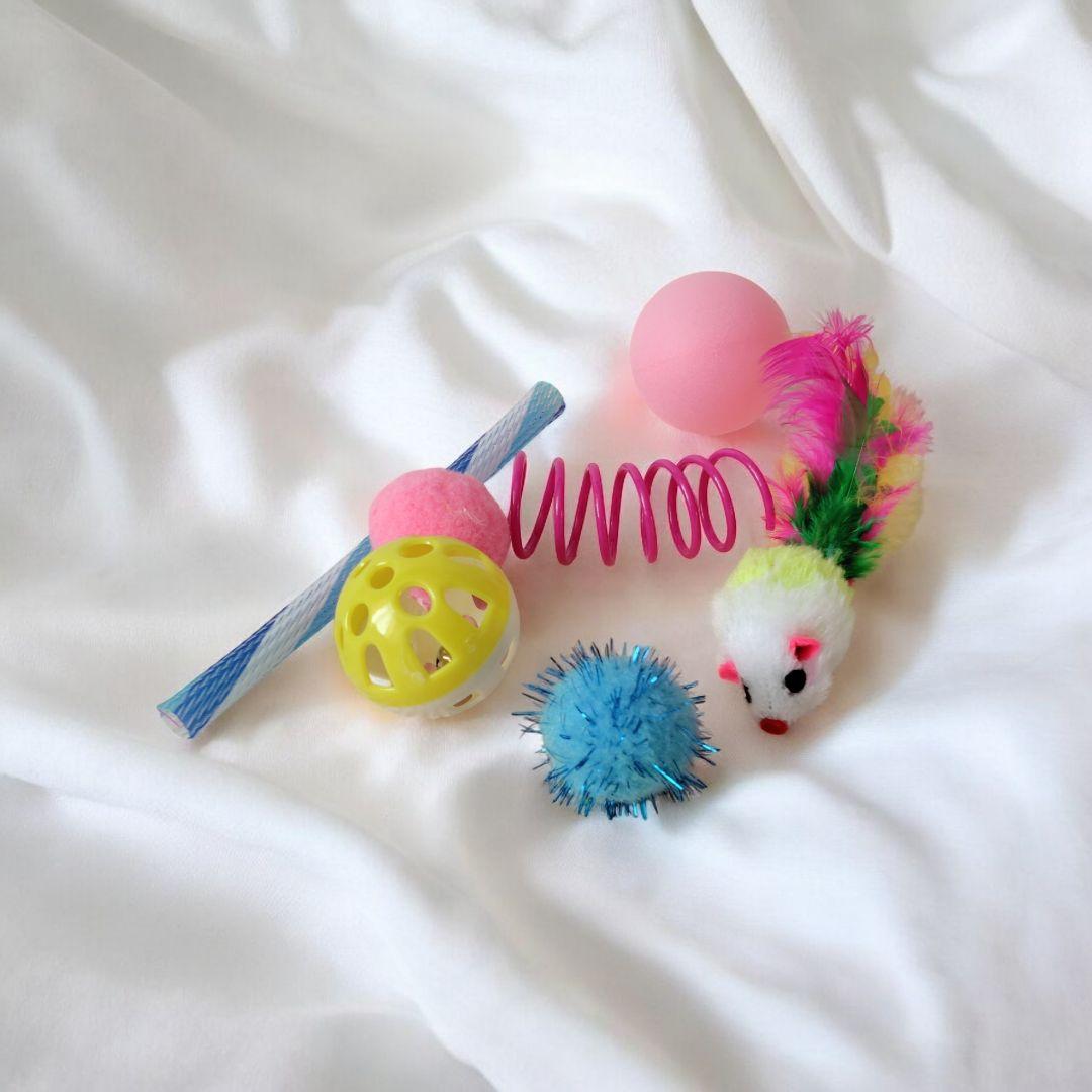 【猫のおもちゃ】7点セット 羽根付きネズミ バネ まりも風ボール 鈴入ボール 猫