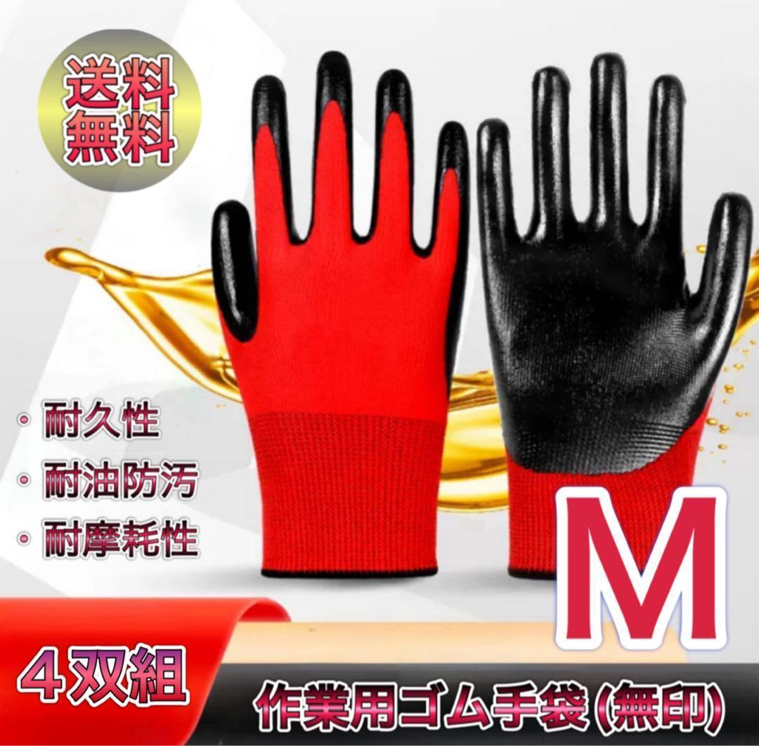 作業用ゴム手袋 4双セット 滑り止め付き 耐油 耐摩耗 天然ラテックス M