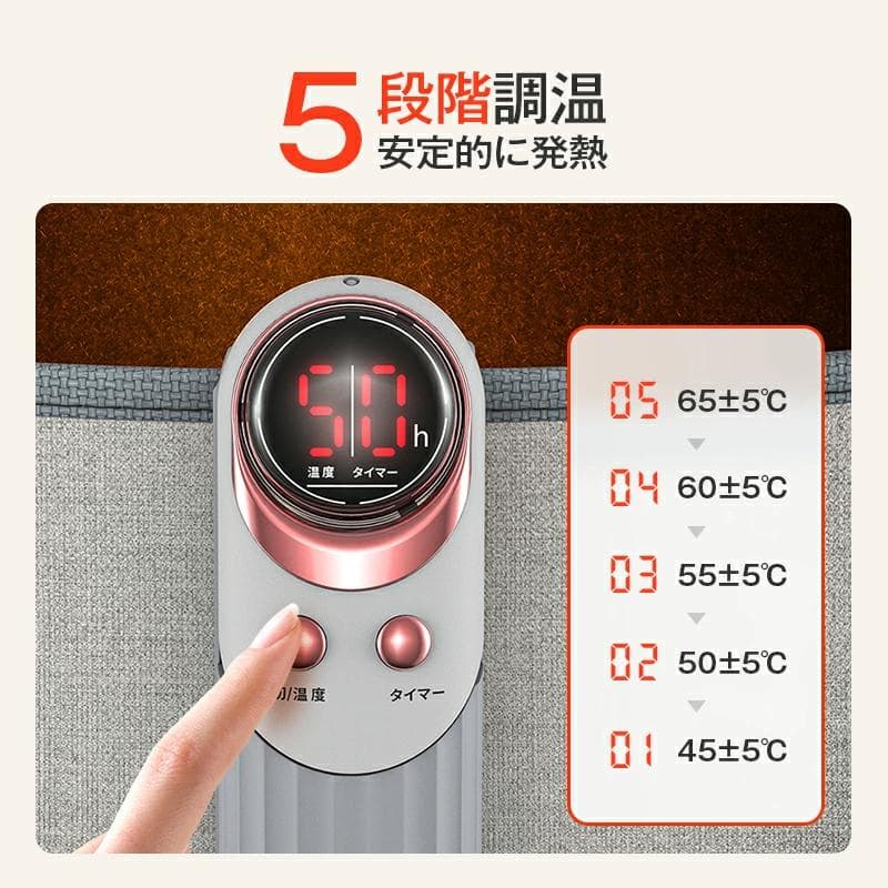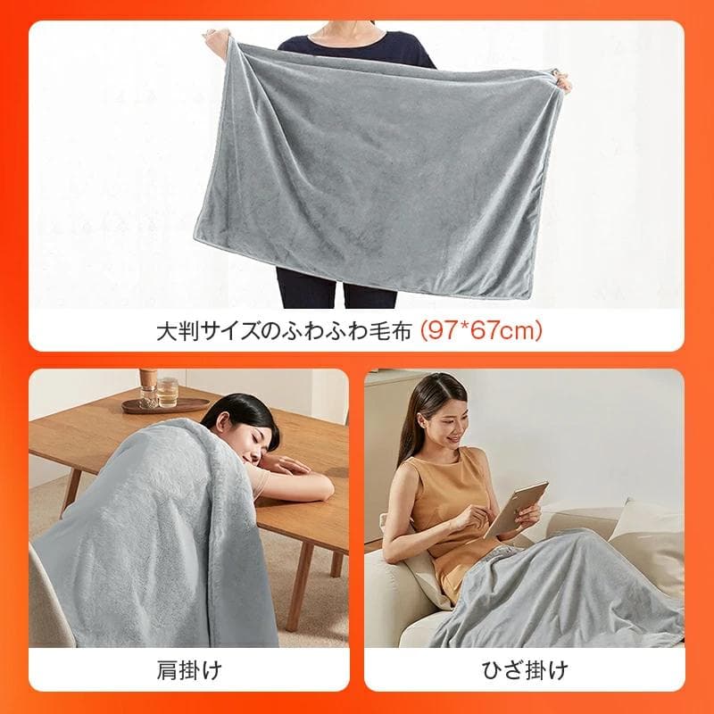 パネルヒーター ラウンド型 遠赤外線 毛布付 足元ヒーター 70°C 5段階調整
