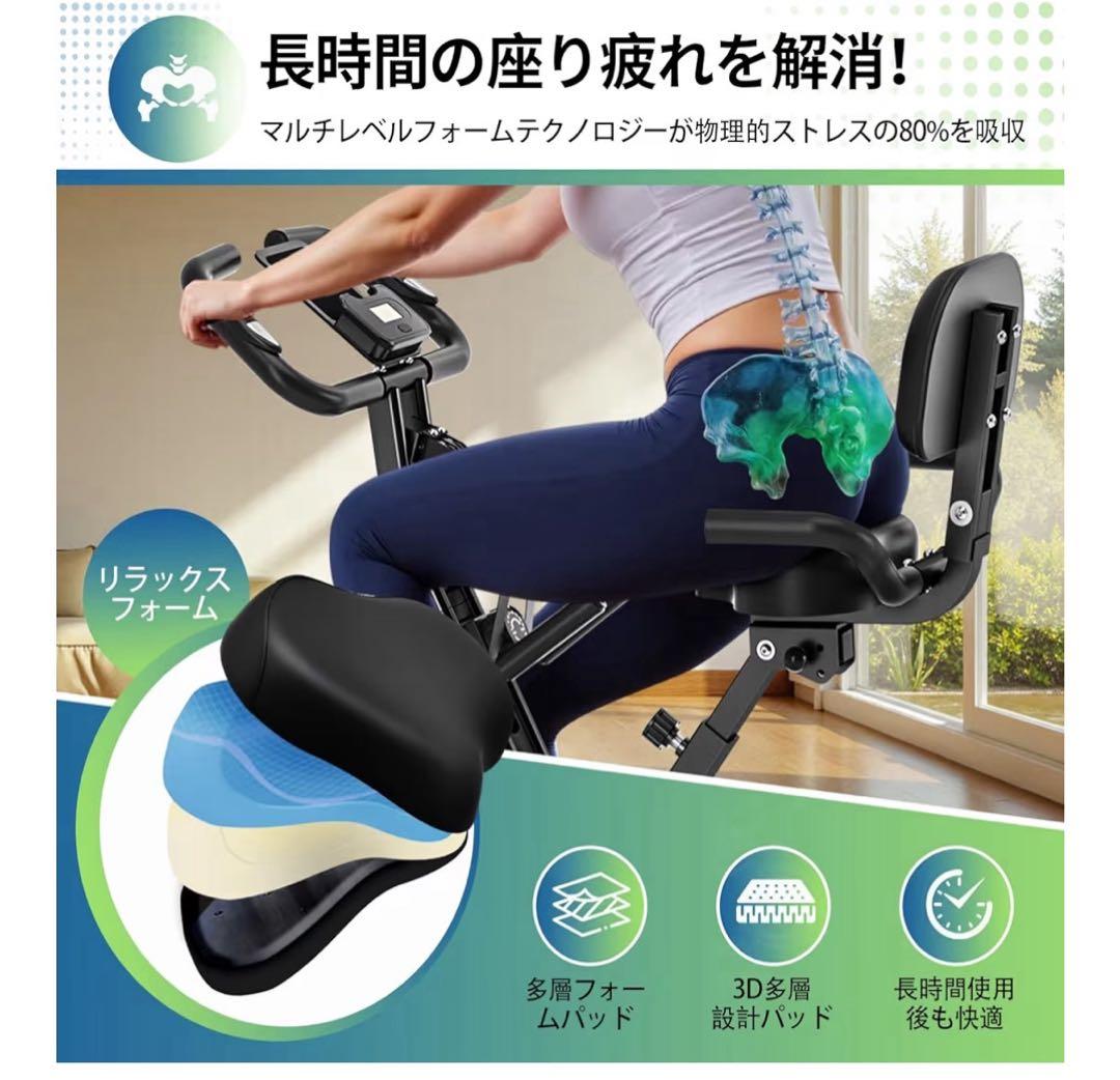 エアロバイク 家庭用 静音 フィットネスバイク 5機能 折りたたみ 16段階負荷