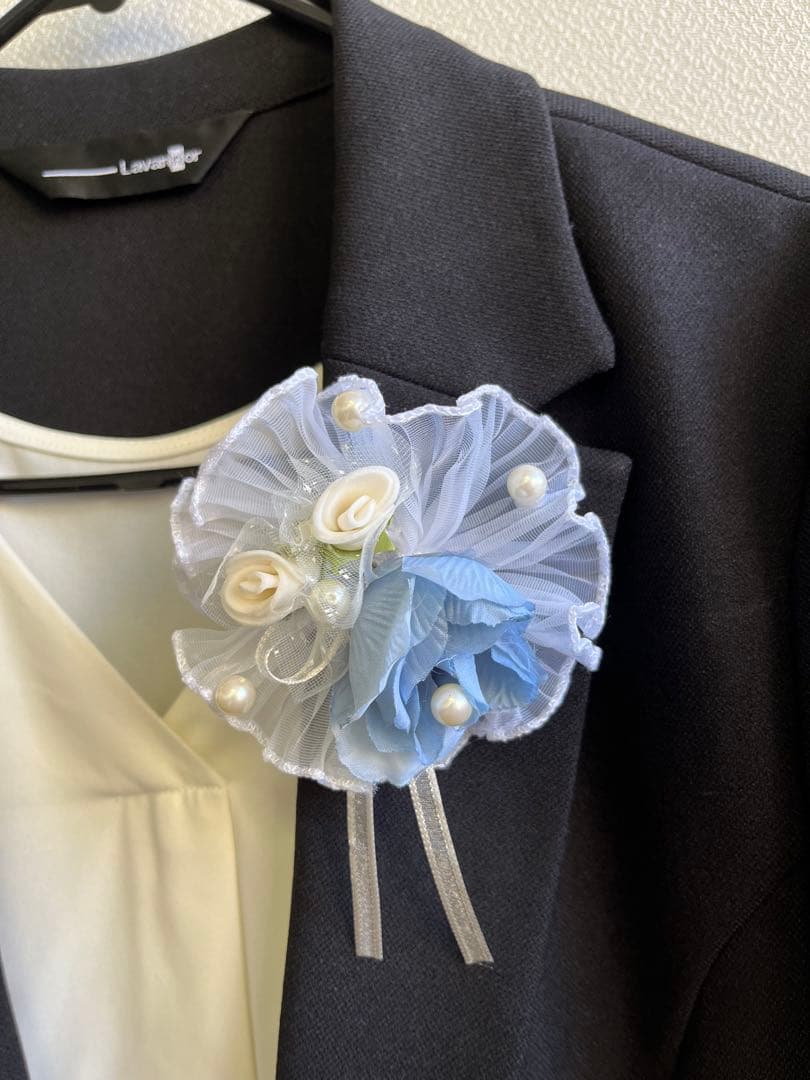 ハンドメイド コサージュ 青バラ レース パール ヘアアクセサリー