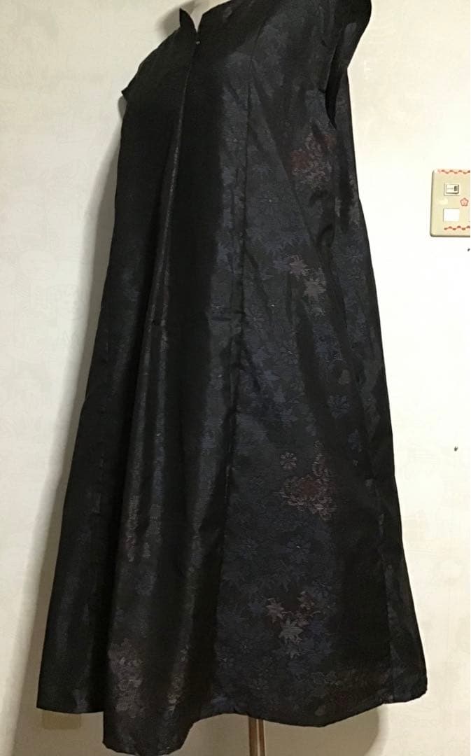 大島紬着物リメイク☆花柄ノースリーブワンピース